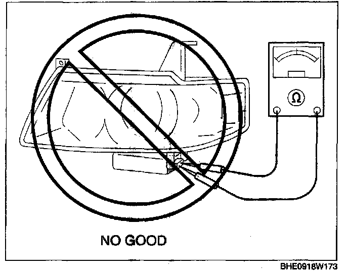 - Verify that the discharge headlights illuminate normally by testing them several times under cold Illumination (headlights off for approx. 10 min or more and then turned off) and hot Illumination (headlights on for approx. 15 min or more, turned off for approx. 1 min, and then turned on again) conditions.