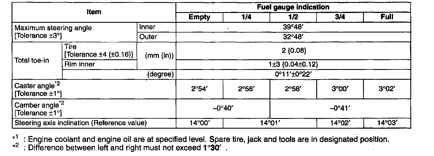FRONT WHEEL ALIGNMENTSpecification (Unloaded)*1