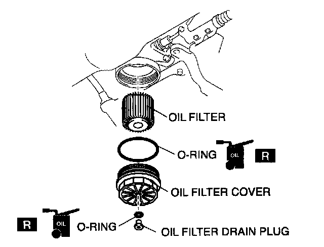 9. Apply clean oil to a now O-ring of the oil filter drain plug.
