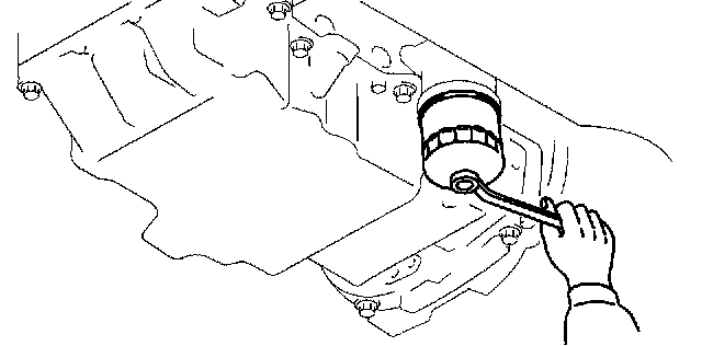 2. Remove the oil filter using a commercially available, cap-type oil filter wrench (76 mm 13.0 inch) diameter, 15 sided).
