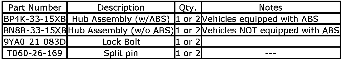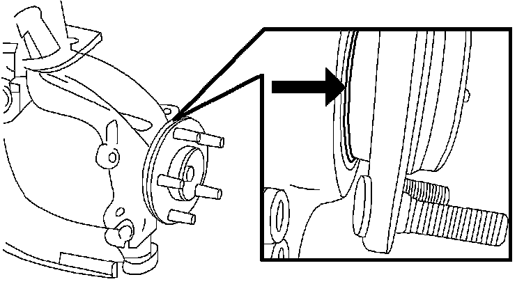 5. Visually inspect the front wheel bearing and identify if it is properly seated in the front steering knuckle. If the hub is fully seated, refer to Workshop Manual to diagnose the concern, otherwise continue with this Service Bulletin.