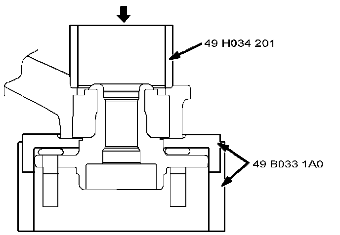 10. Apply the approved anaerobic adhesive to a new wheel hub component on the area that first makes contact with the knuckle during the press operation.