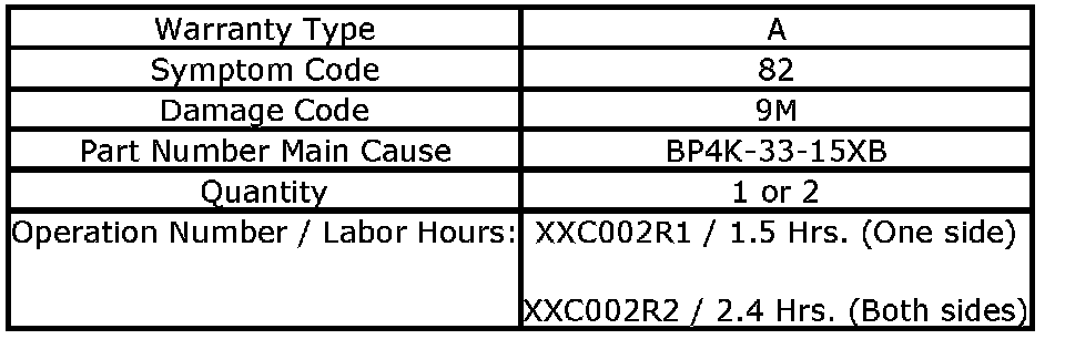^ This warranty information applies only to verified customer complaints on vehicles eligible for warranty repair. Refer to the Warranty Wizard for warranty term information.