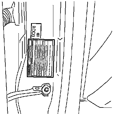 5. Place the Authorized Modifications label on the A-pillar below the tear tag in the driver door jamb.