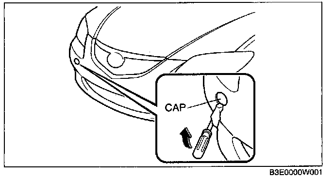 CAUTION: The cap cannot be completely removed. Do not use excessive force as it may damage the cap or scratch the painted bumper surface.