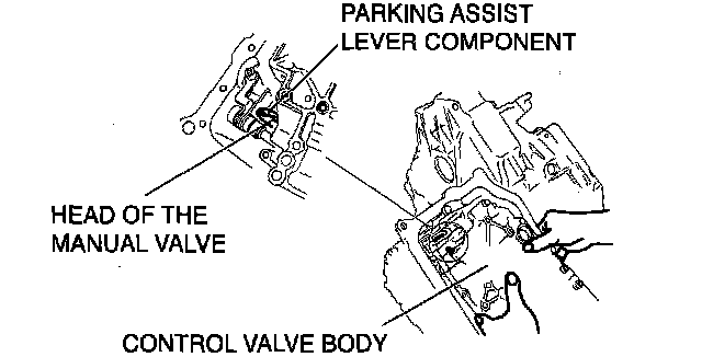 Note: Remove the control valve body by removing the head of the manual valve from the port of the parking assist lever component.