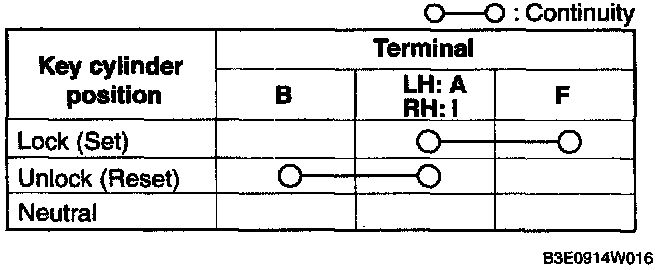 Inspect for continuity between the front door key cylinder switch terminals.