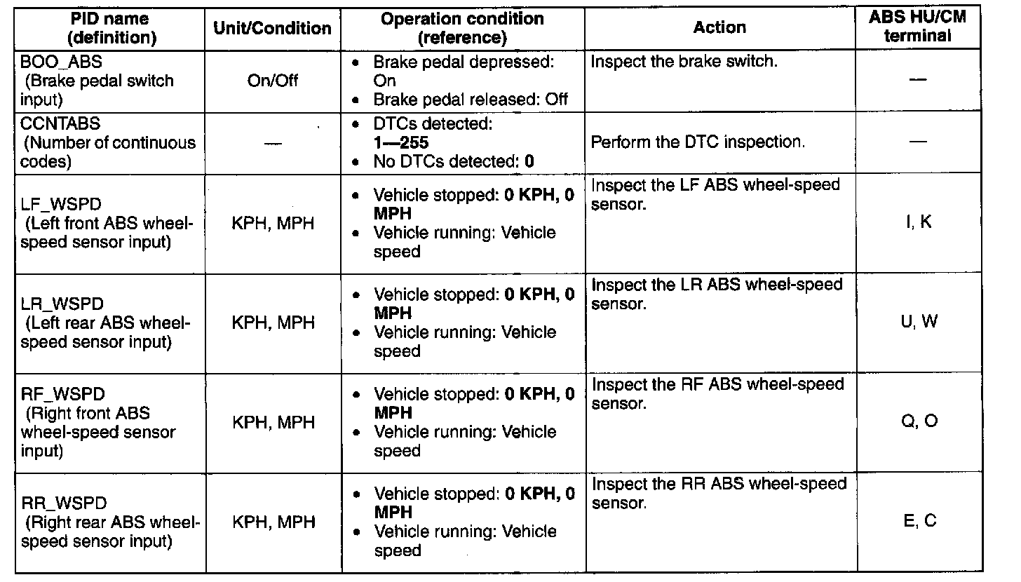 PID/DATA Monitor Table