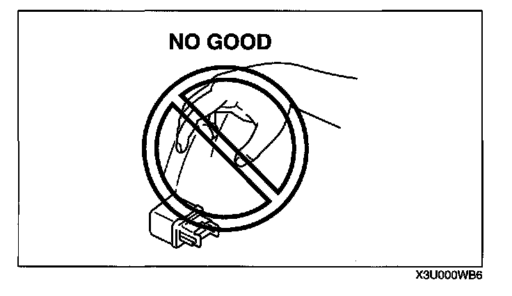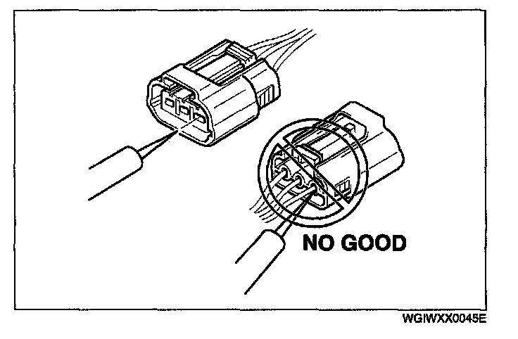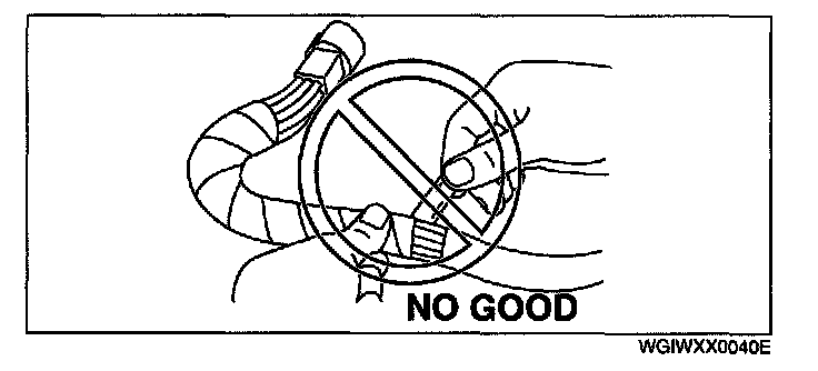- When a tester is used to inspect for continuity or measuring voltage, insert the tester probe from the wiring harness side.