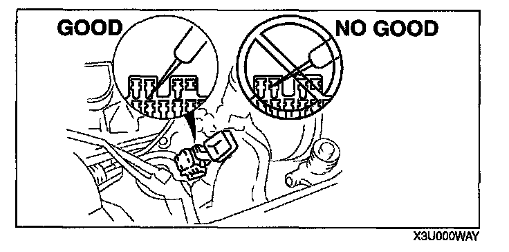 CAUTION: To prevent damage to the terminal, wrap a thin wire around the tester probe before inserting into terminal.
