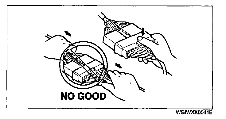 - When disconnecting connector, grasp the connectors, not the wires.