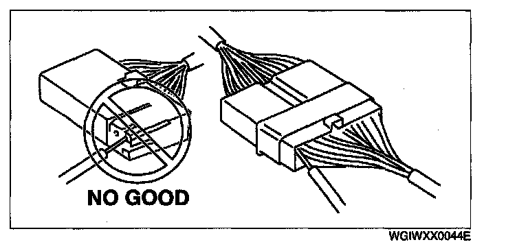 - Inspect the terminals of waterproof connectors from the connector side since they cannot be accessed from the wiring harness side.