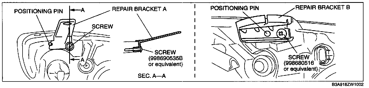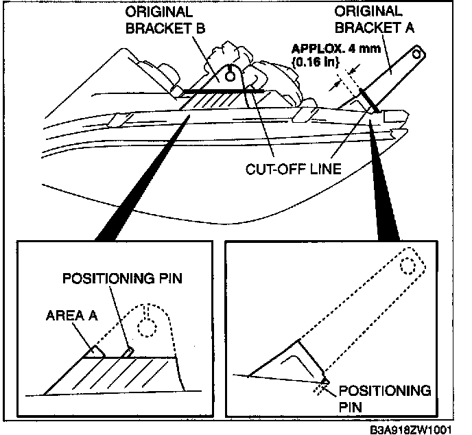 NOTE: After roughly cutting off the brackets, position the repair bracket using the positioning pins, and gradually smoothen any rough areas to create a shape that facilitates installation.