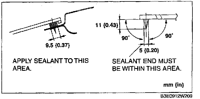 2. If the sealant has come off completely in any one place, apply some primer after degreasing, and allow it approx. 30 min to dry. Then apply 2 mm {0.08 in} thickness of new sealant.