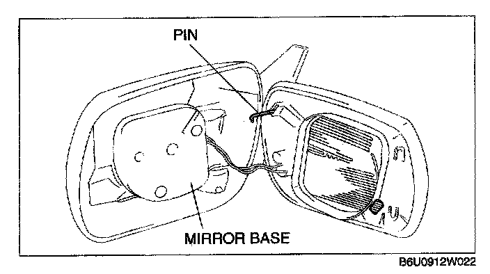 1. Press the outside mirror into the base so that the pin does not dislodge.