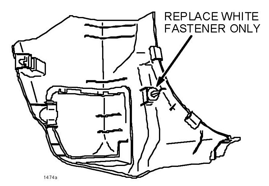 3. Install new white plastic fastener to back of original kick panel.