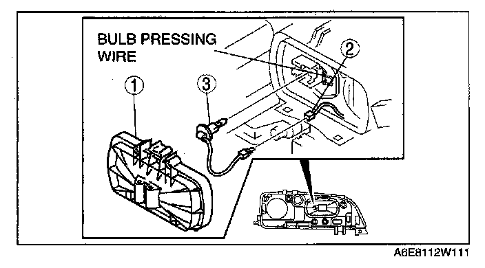 1. Release the bulb pressing wire to remove the front fog light bulb.
