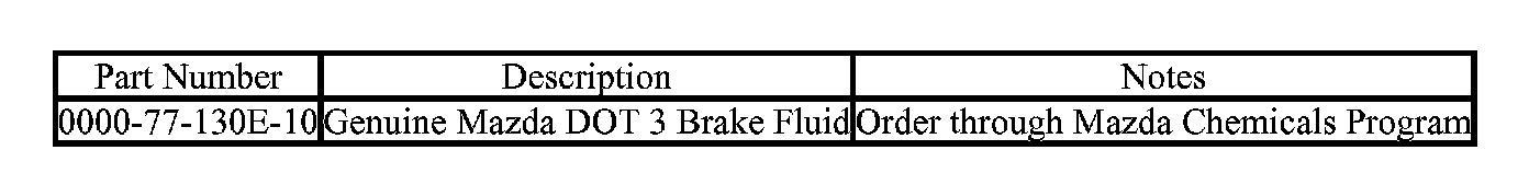 2. Replace brake fluid with Genuine Mazda DOT 3 Brake Fluid according to the Workshop Manual (section 04-11 AIR BLEEDING).