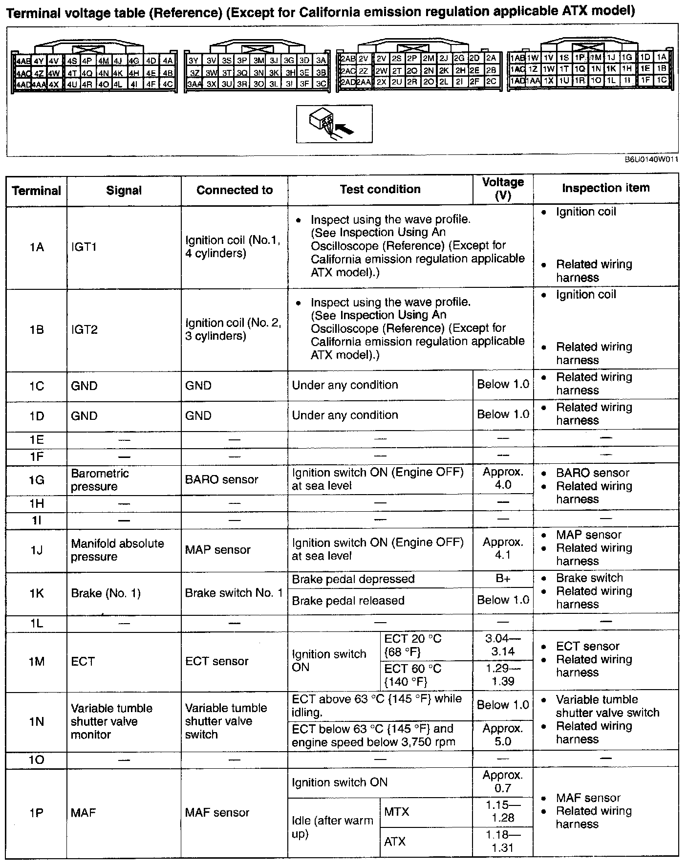 Terminal Voltage Table (Reference) - Terminals (1A - 1P):