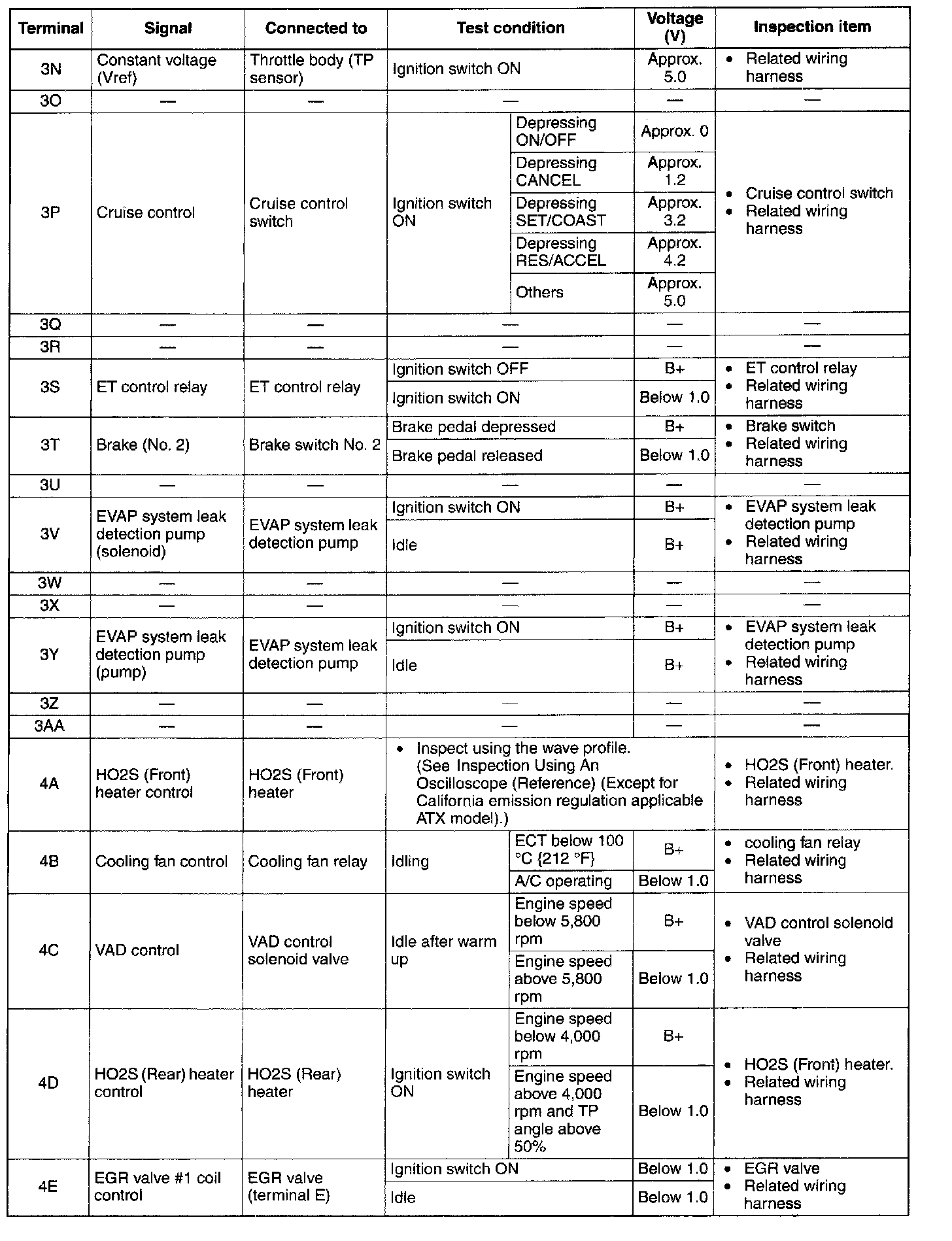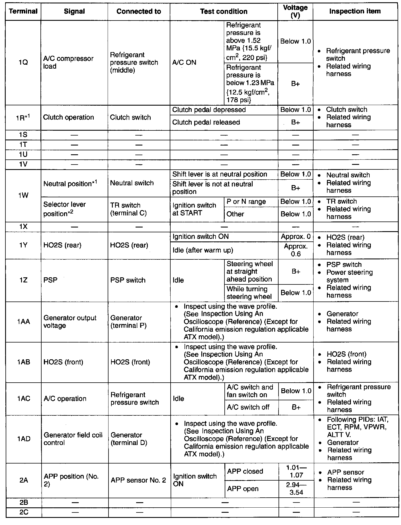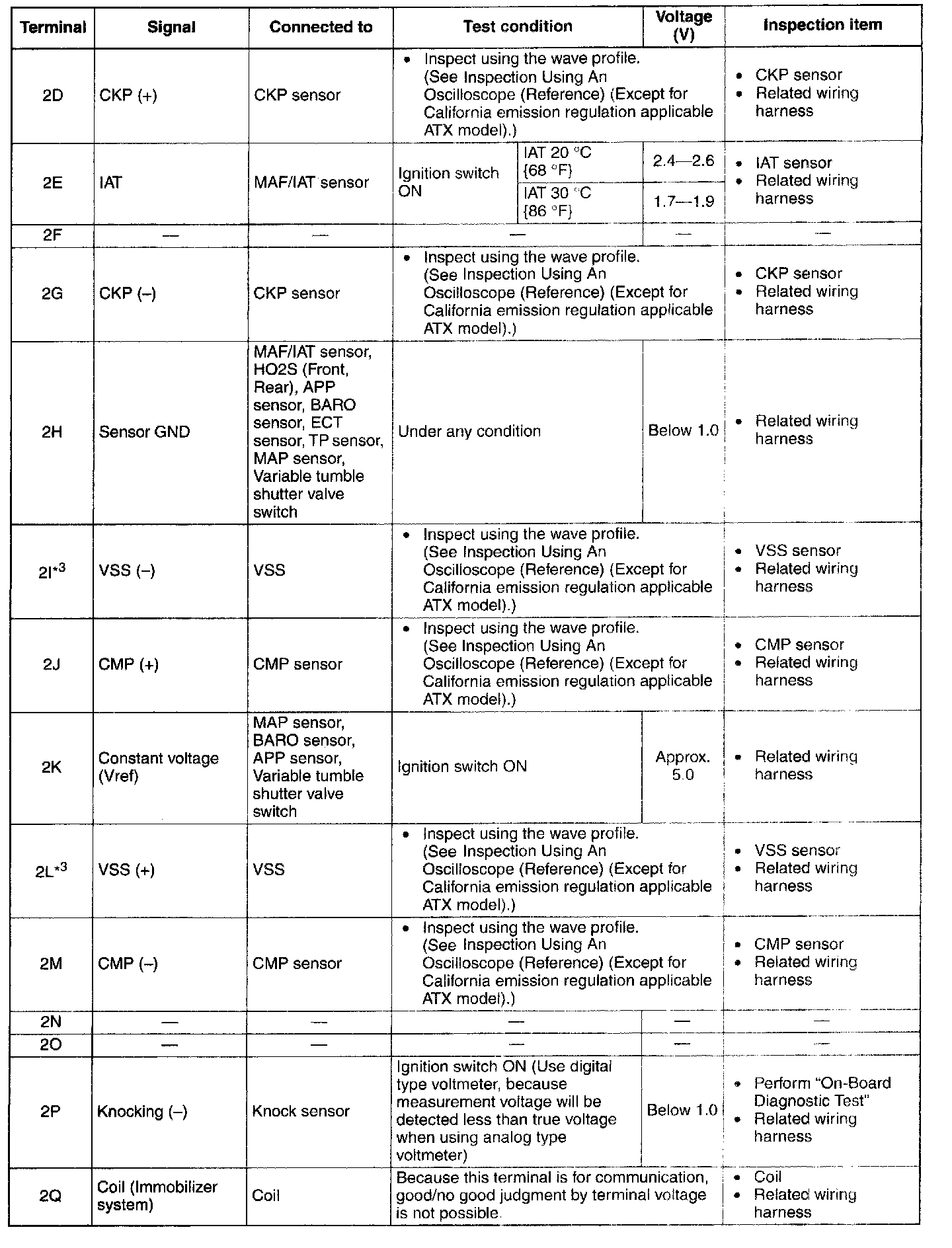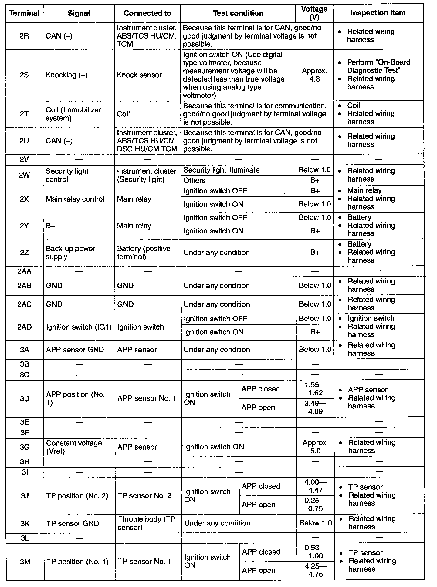 Terminal Voltage Table (Reference) - Terminals (2D - 2Q):