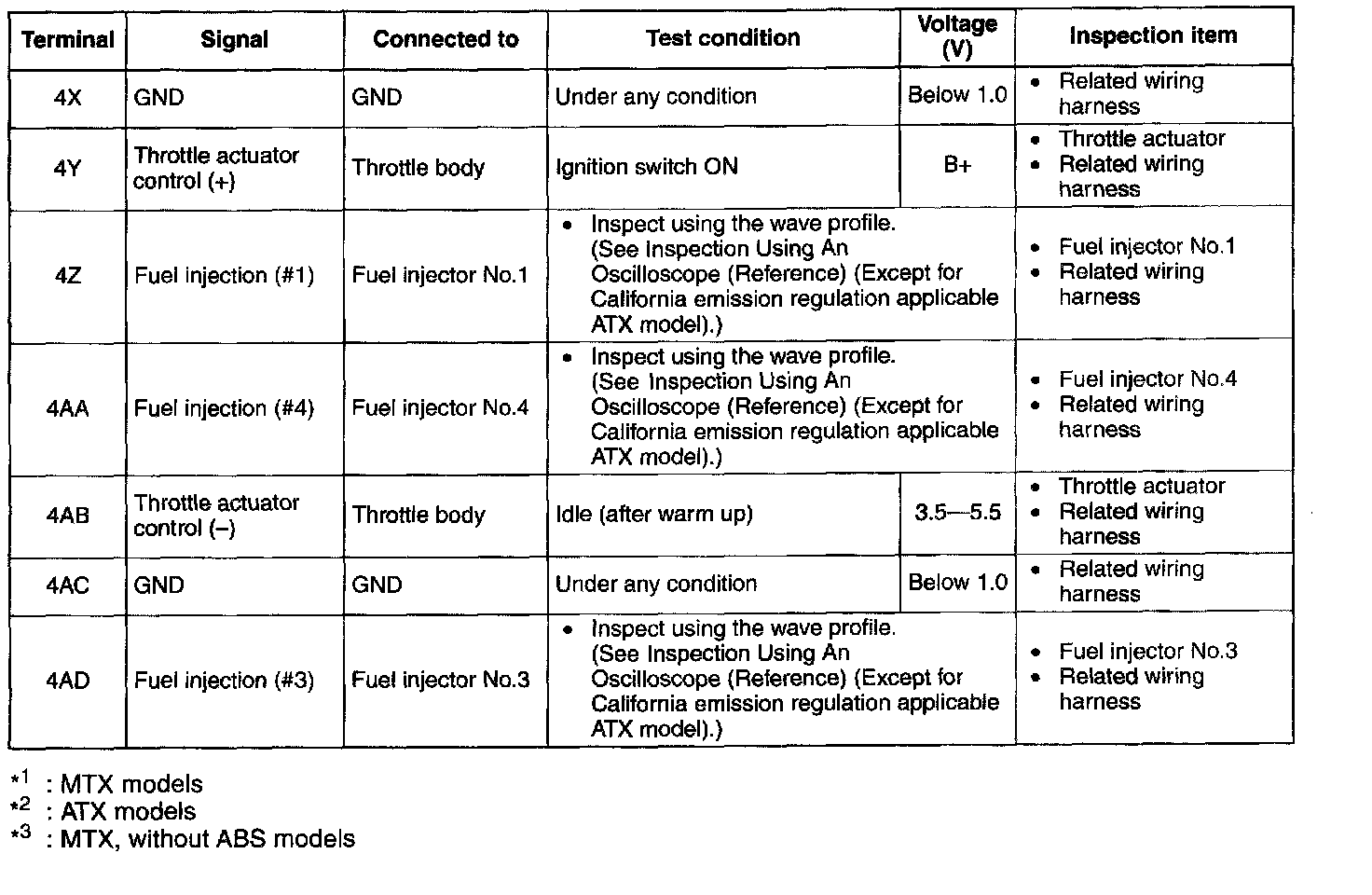 Except California Emission Regulation Applicable ATX Model