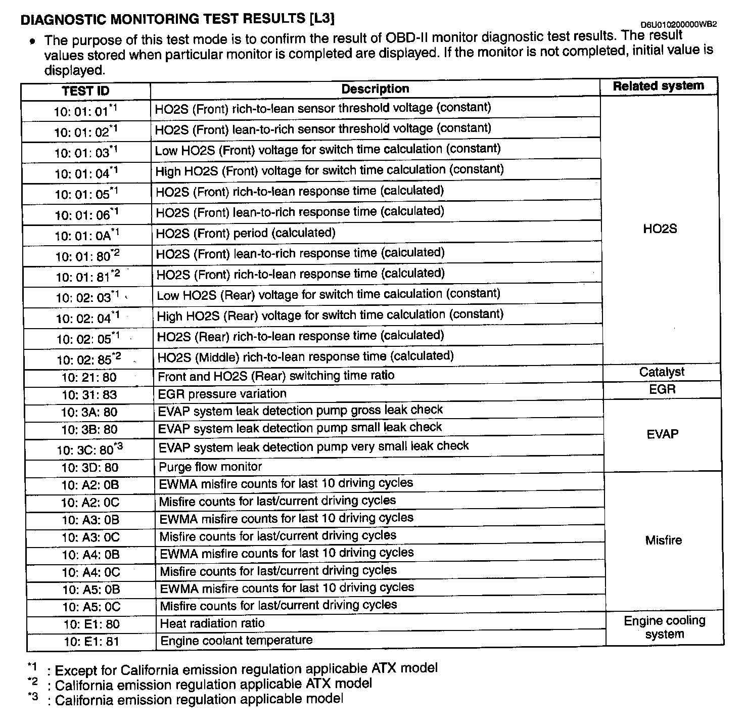 Diagnostic Monitoring Test Results