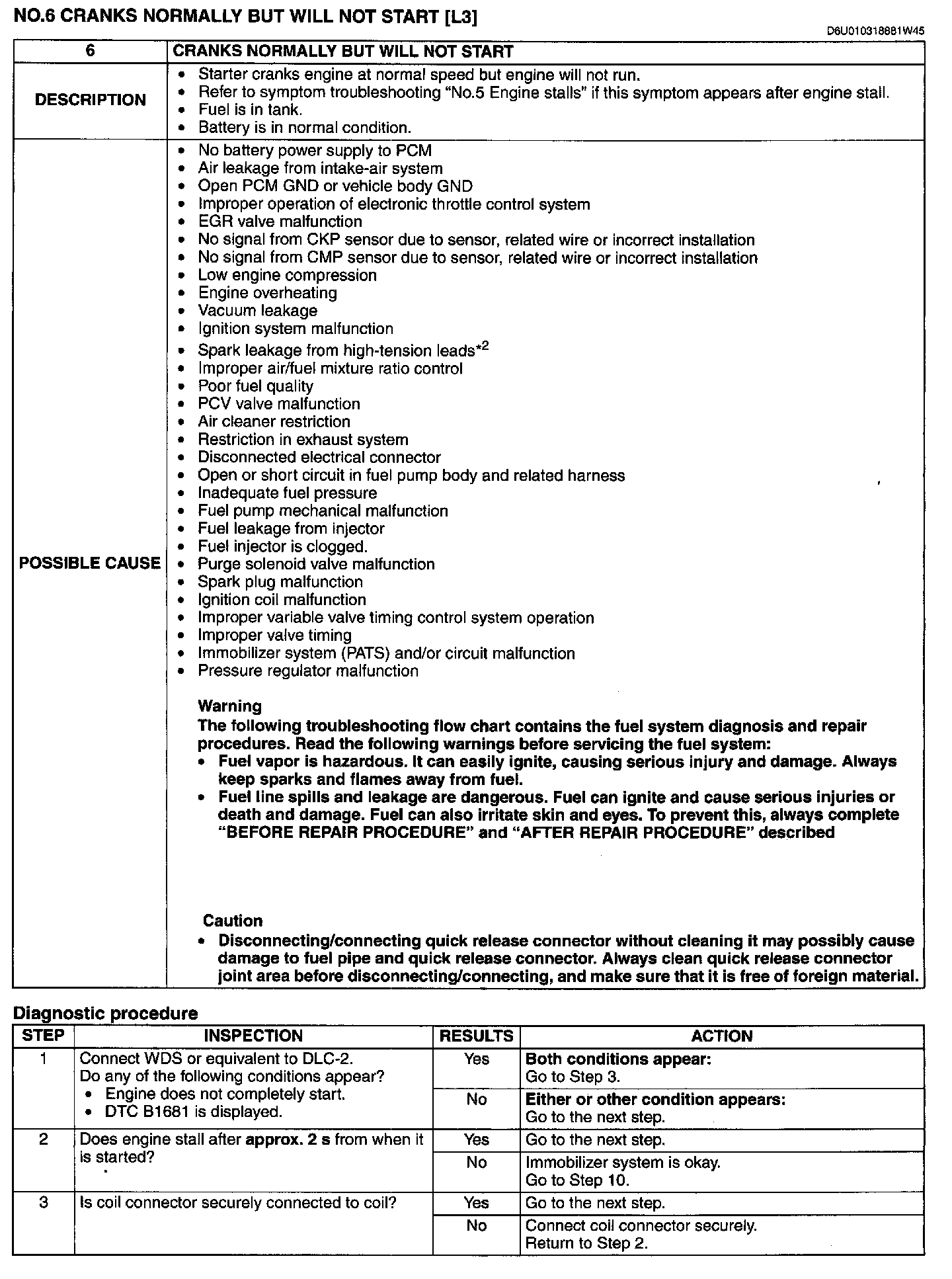 No.6 Cranks Normally But Will Not Start