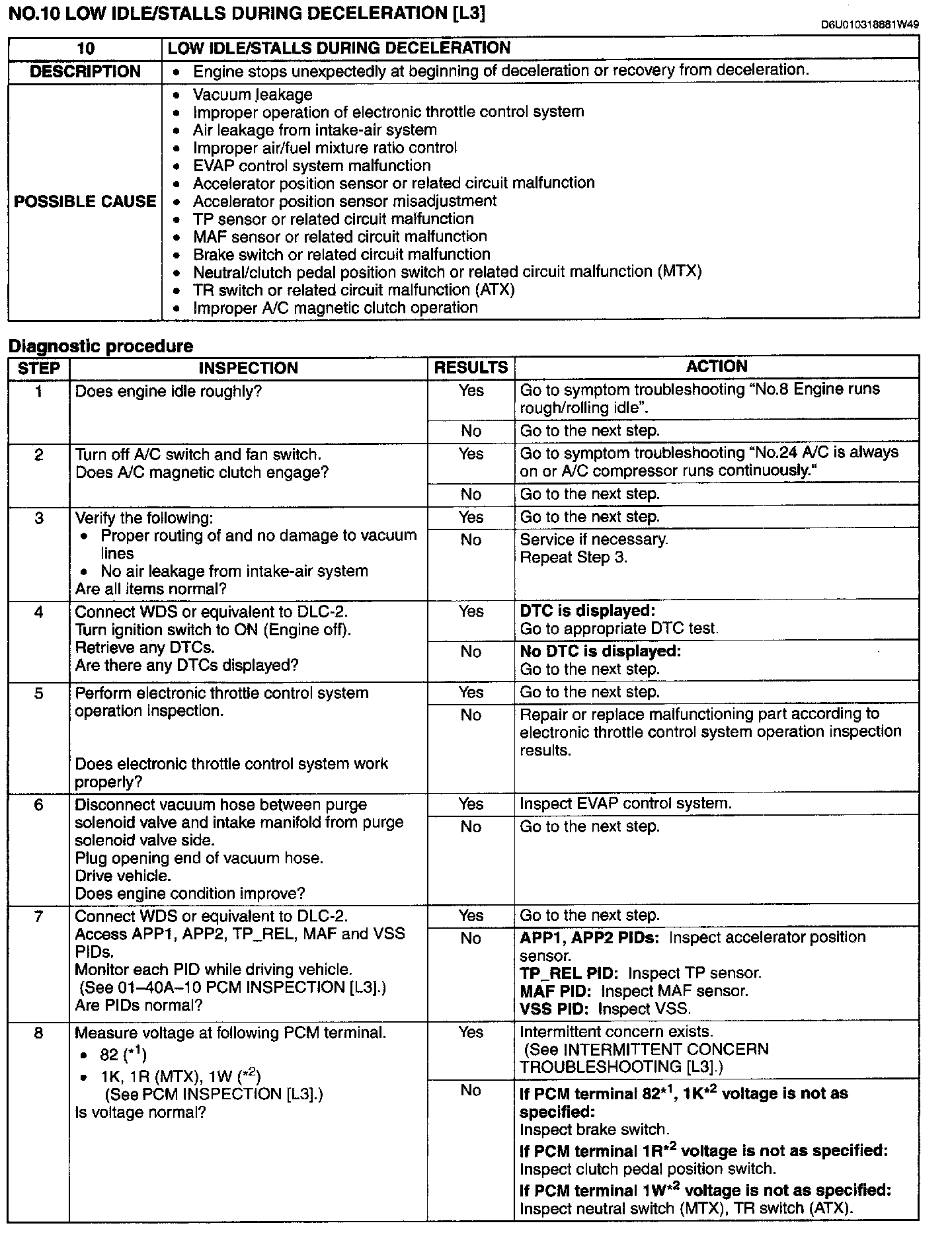 Low Idle/Stalls During Deceleration