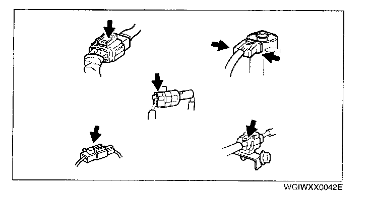 - Inspect the terminals of waterproof connectors from the connector side since they cannot be accessed from the wiring harness side.