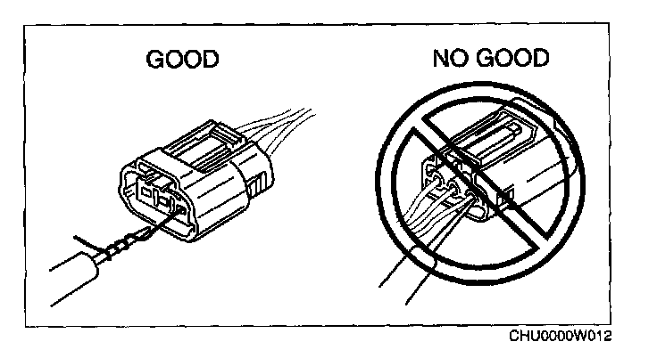 CAUTION: To prevent damage to the terminal, wrap a thin wire around the tester probe before inserting into terminal.