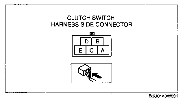 - Clutch switch terminal B (harness-side) and power supply