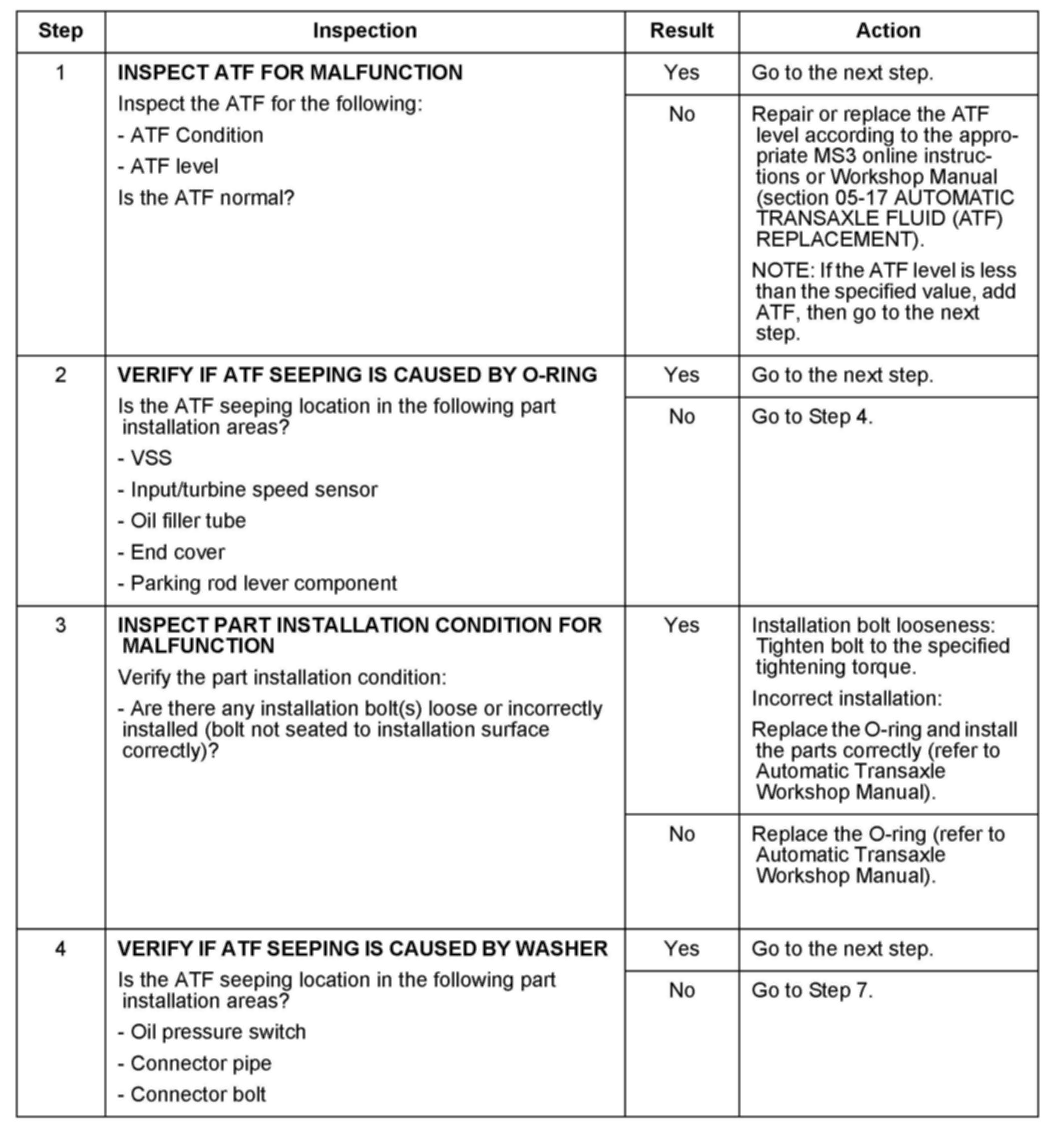 DIAGNOSIS AND REPAIR PROCEDURE FOR ATF SEEPAGE