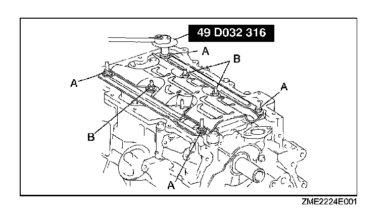 Tighten nuts A to 5.0 N-m (51.0 kgf-cm, 44.3 in-lbf), then nuts B to 15.0 N-m (153 kgf-cm, 133 in-lbf).