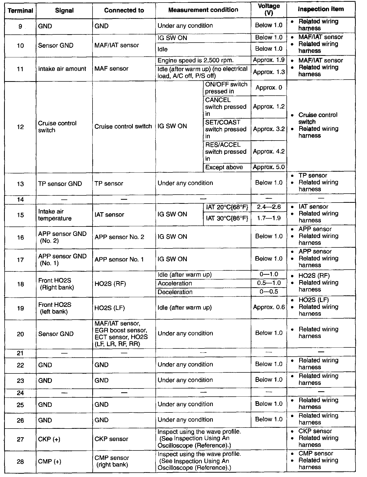 Terminal Voltage Table (Reference) - Terminals (9 - 28):