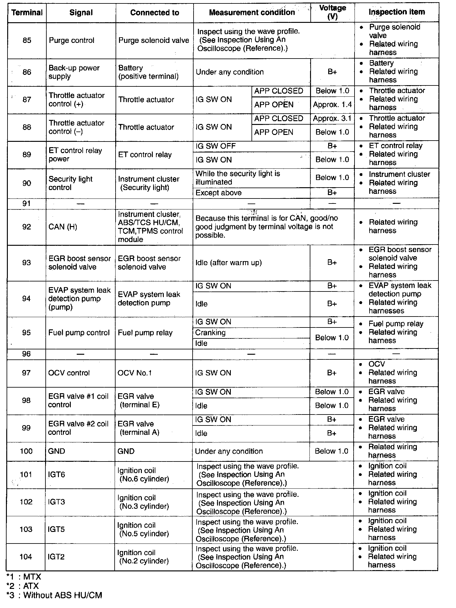 Terminal Voltage Table (Reference) - Terminals (85 - 104):