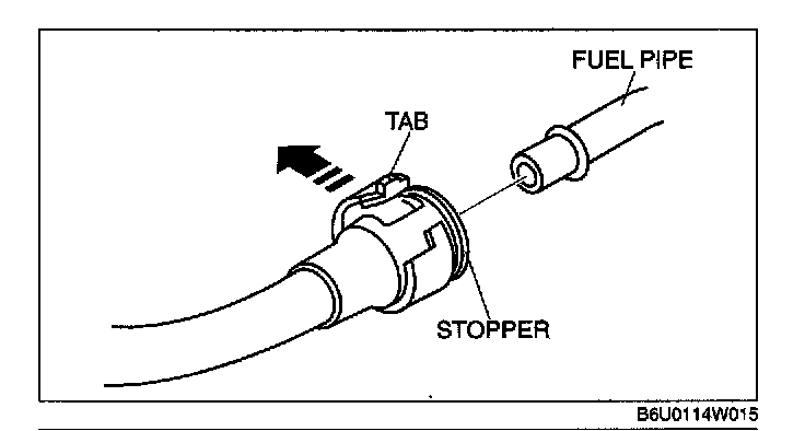 NOTE: A checker tab is integrated with the quick release connector for new plastic fuel hoses. The checker tab will be released from the quick release connector after it is completely engaged with the fuel pipe.
