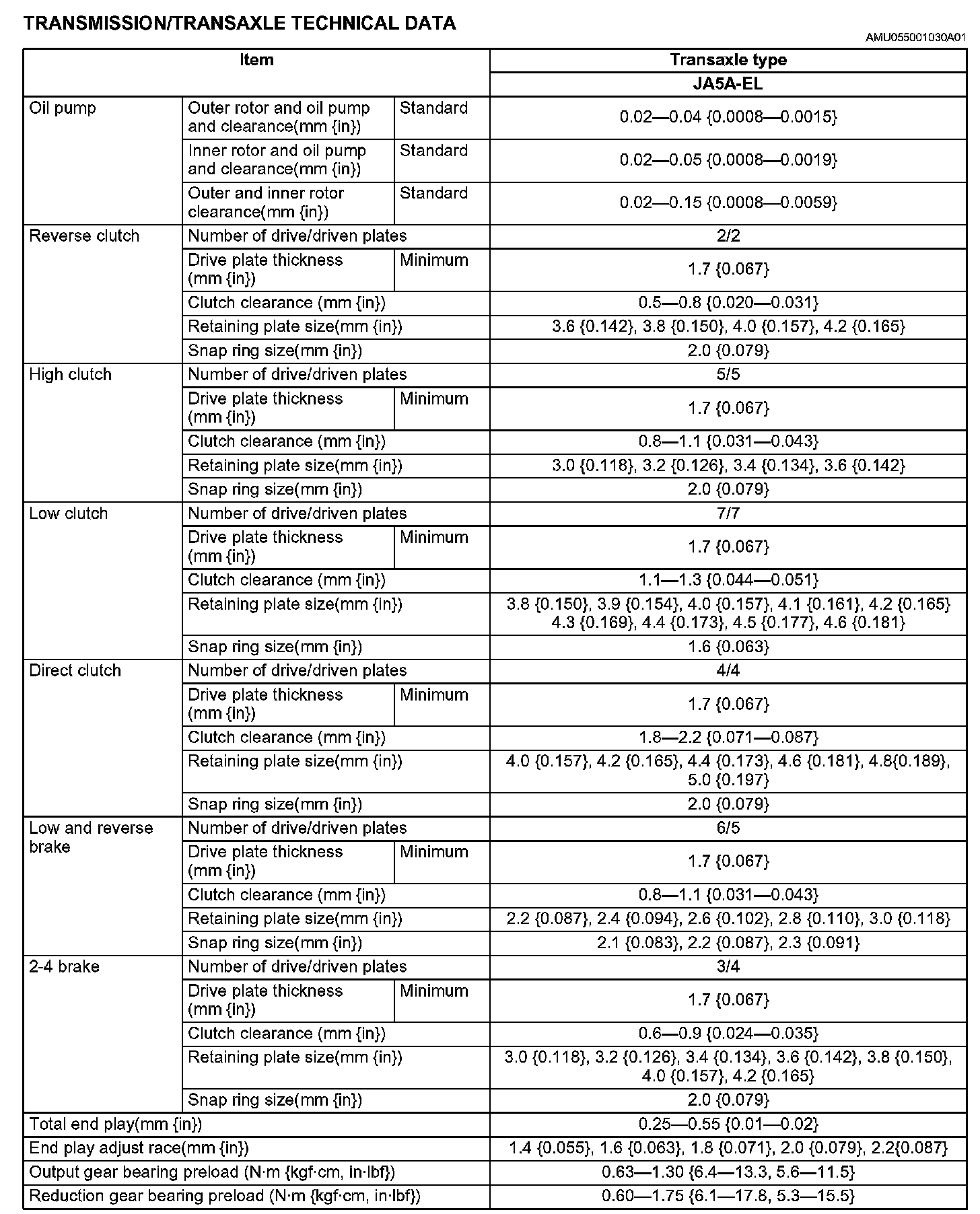 TRANSMISSION/TRANSAXLE TECHNICAL DATA