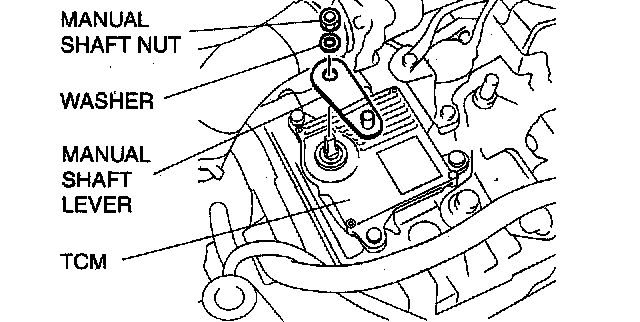 ^ Do not use an impact wrench. Hold the manual shaft lever when removing the manual shaft nut, or the transaxle may be damaged.