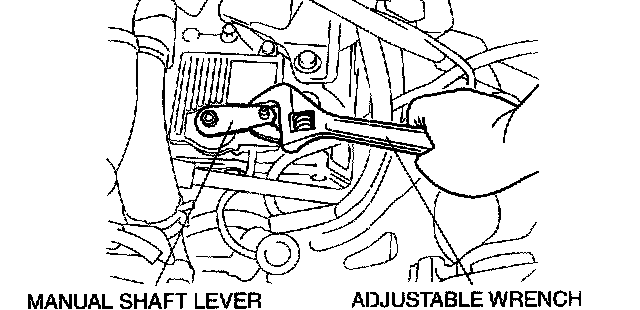 5. Set the adjustable wrench as shown in the figure to hold the manual shaft lever.