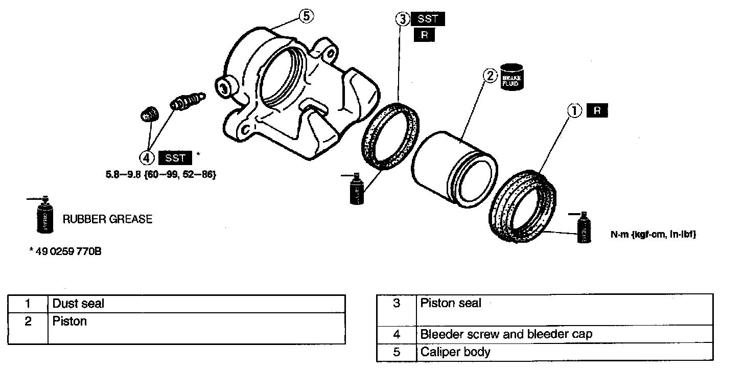 CALIPER (FRONT) DISASSEMBLY/ASSEMBLY1. Disassemble in the order indicated in the table.