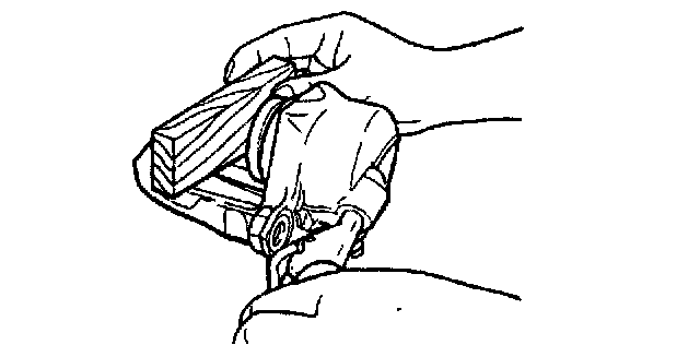2. Gently blow compressed air through the hole to force the piston out of the caliper.
