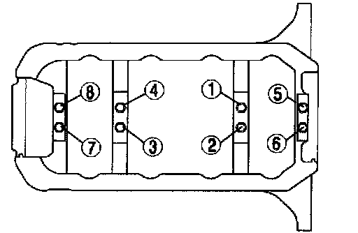 2. Tighten the oil strainer bolts in the order shown.