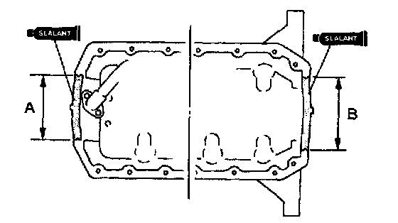 1. Apply silicone sealant onto the area of oil pan gasket indicated by A and B.