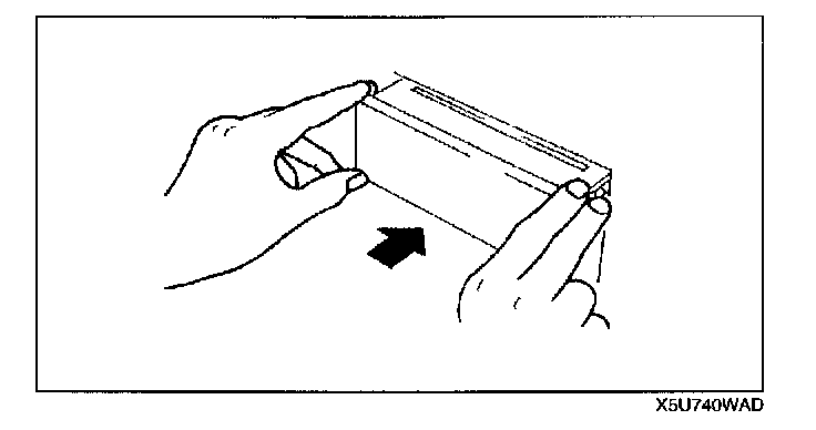 5. With the beveled parts of the SST (Removing Tool) facing inward, insert them into the climate control unit.