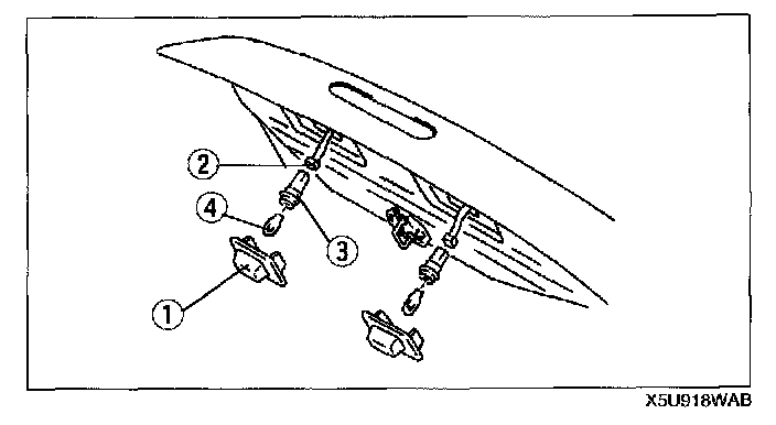 1. (1) Slide the license plate light to the arrow mark and (2) remove it.