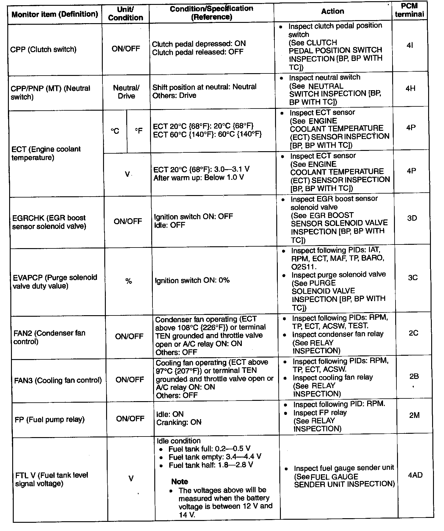 2. Confirm that the following PIDs are within the specifications: