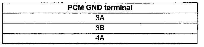 3. Inspect for continuity between the PCM GND terminals and body GND using an ohmmeter.