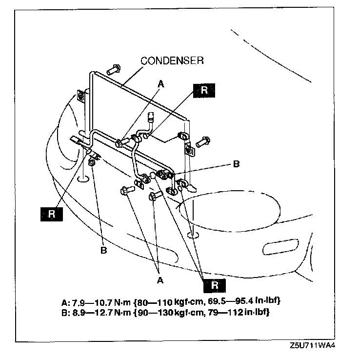 CONDENSER REMOVAL/INSTALLATION1. Discharge the refrigerant from the system. (See REFRIGERANT CHARGING.)