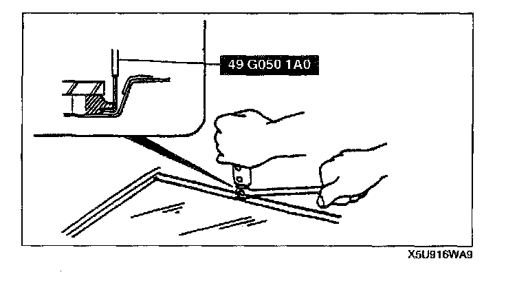 3. Insert the blade of the SST (Sealant Remover) into the sealant, and pull on the bar to cut the sealant near the body as shown.