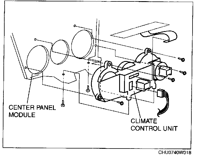 5. Remove the climate control unit from the center panel module.